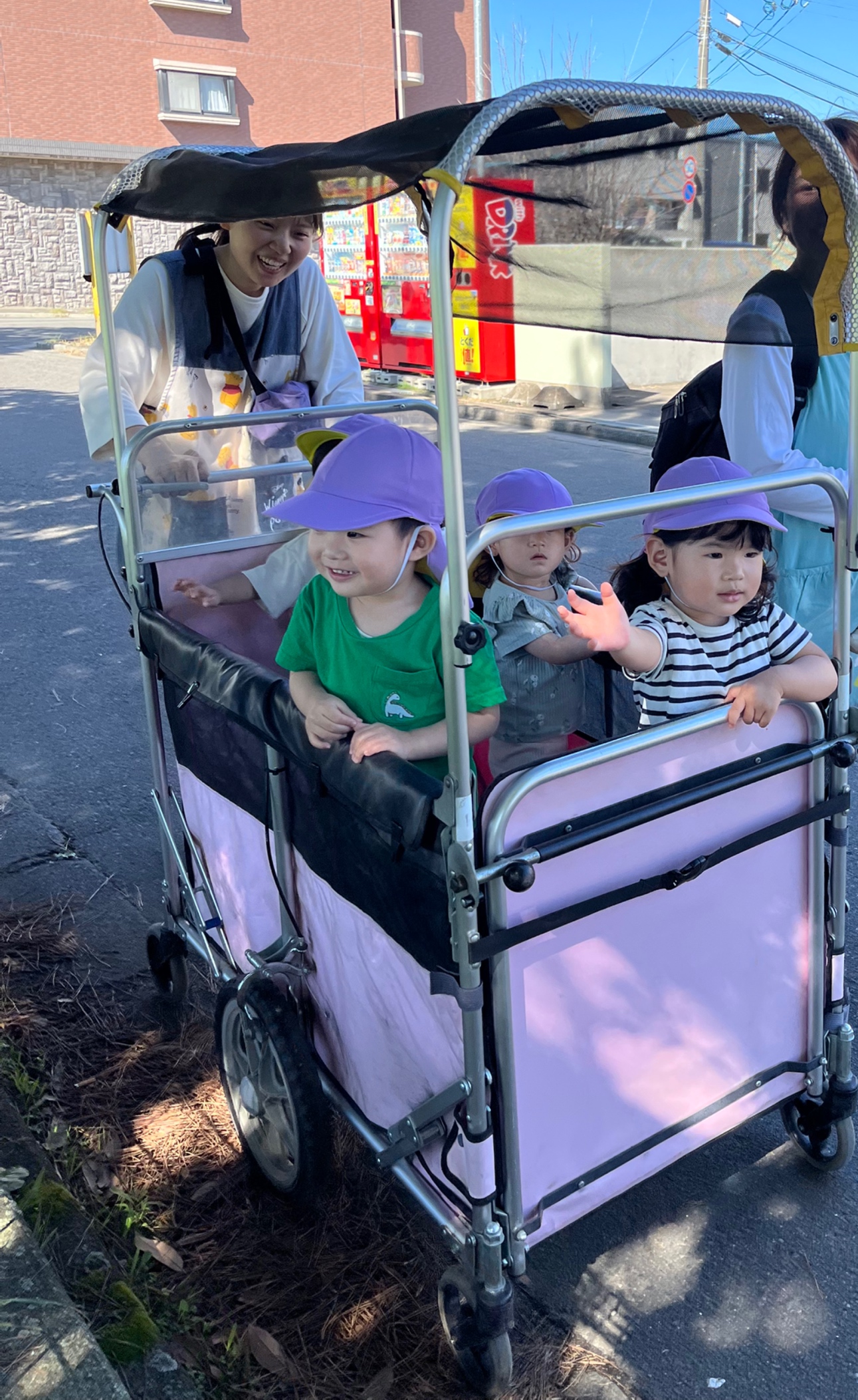 散歩車に乗って到着したよ