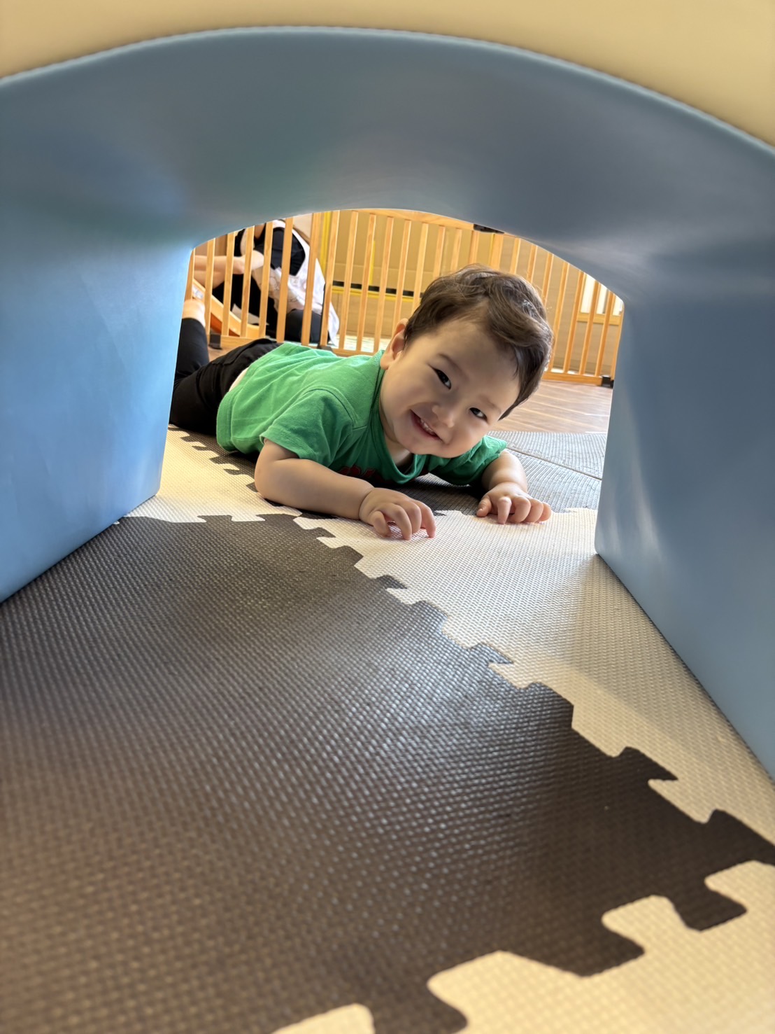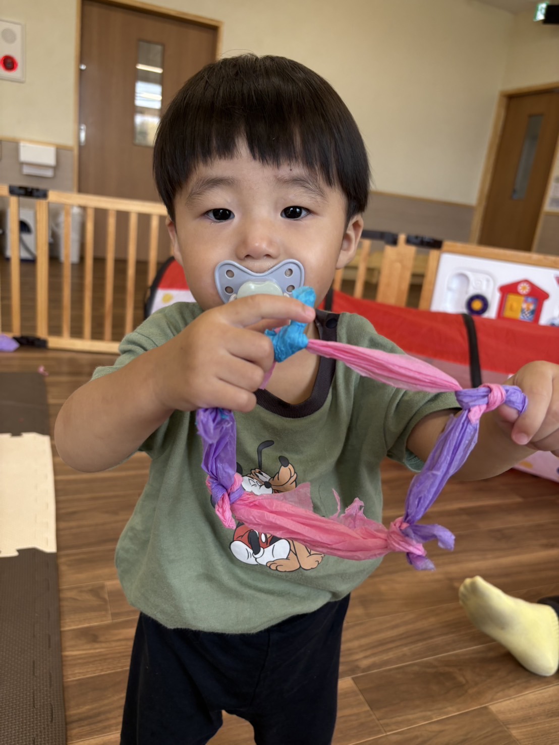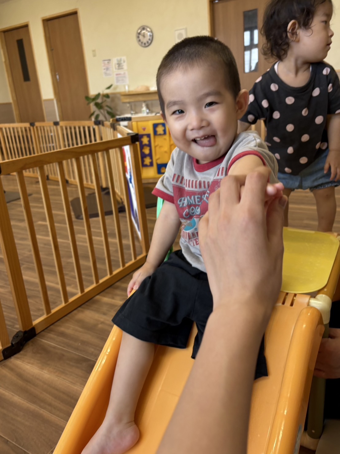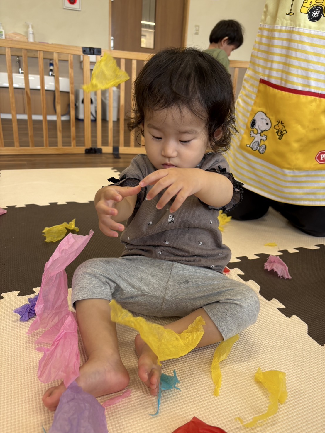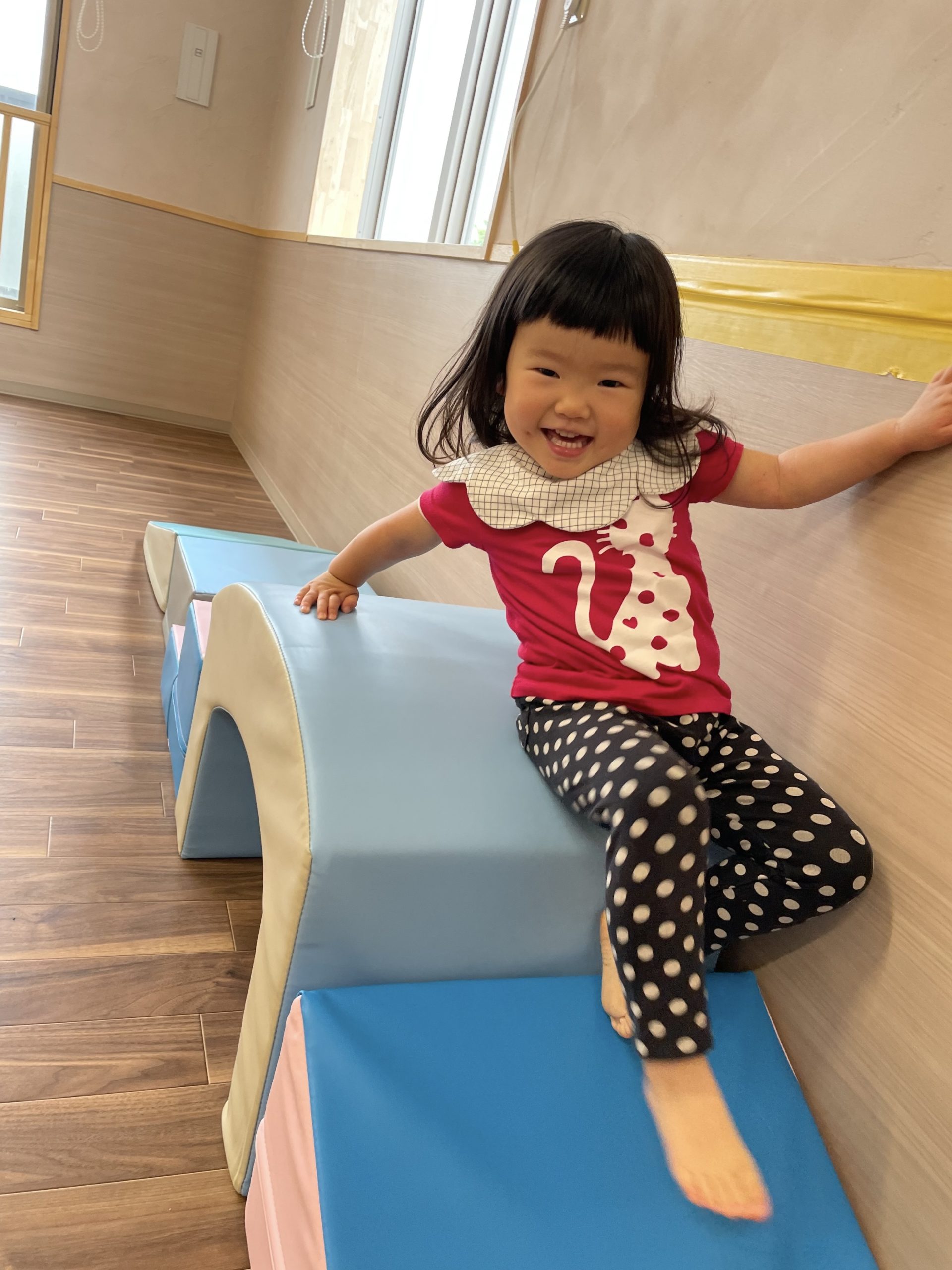0歳児さんはソフトブロックやすべり台で遊びました🎵