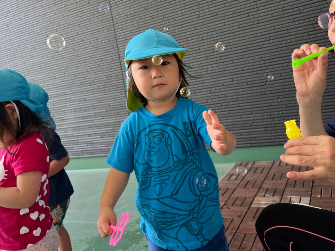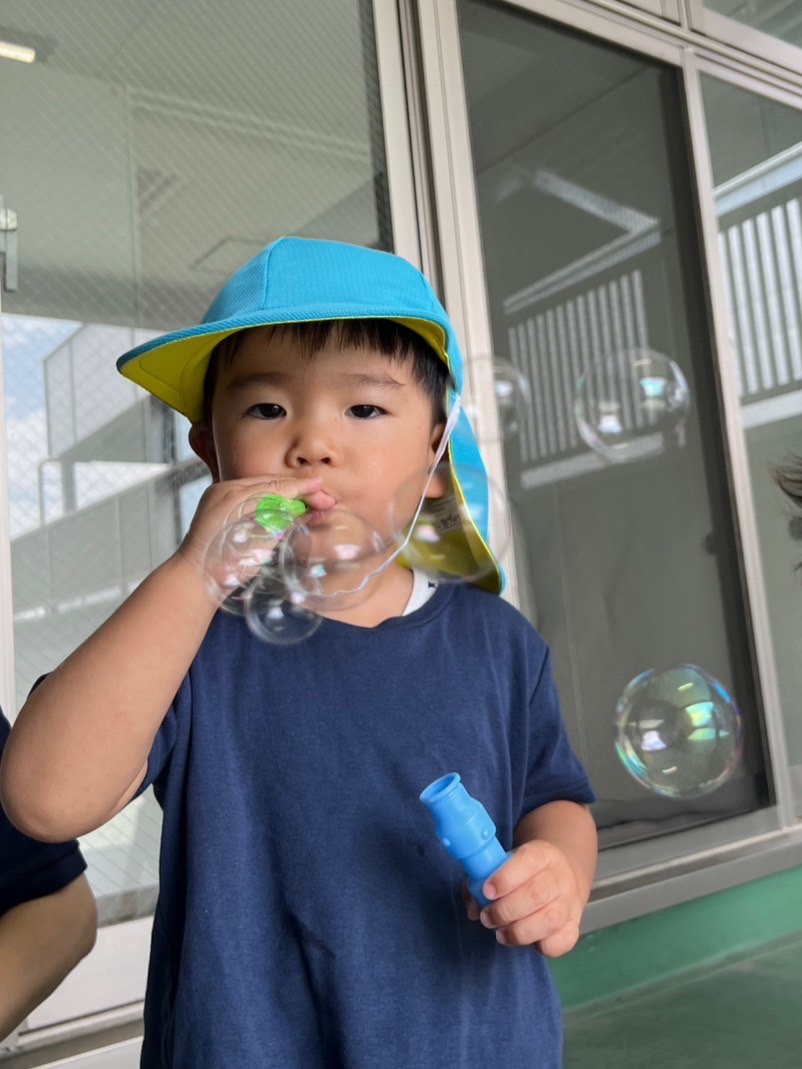 僕は、飛んでいくしゃぼん玉に夢中です☺️✨