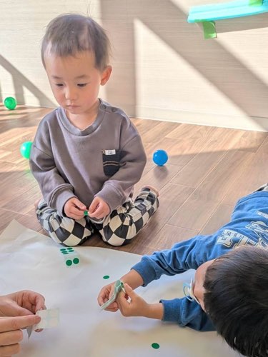 大きな紙にペタペタシール遊びもしたよ☺️