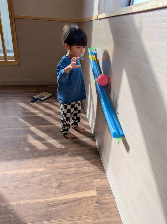 そーっとボールをのせたらボールがコロコロ🟣ˊ˗