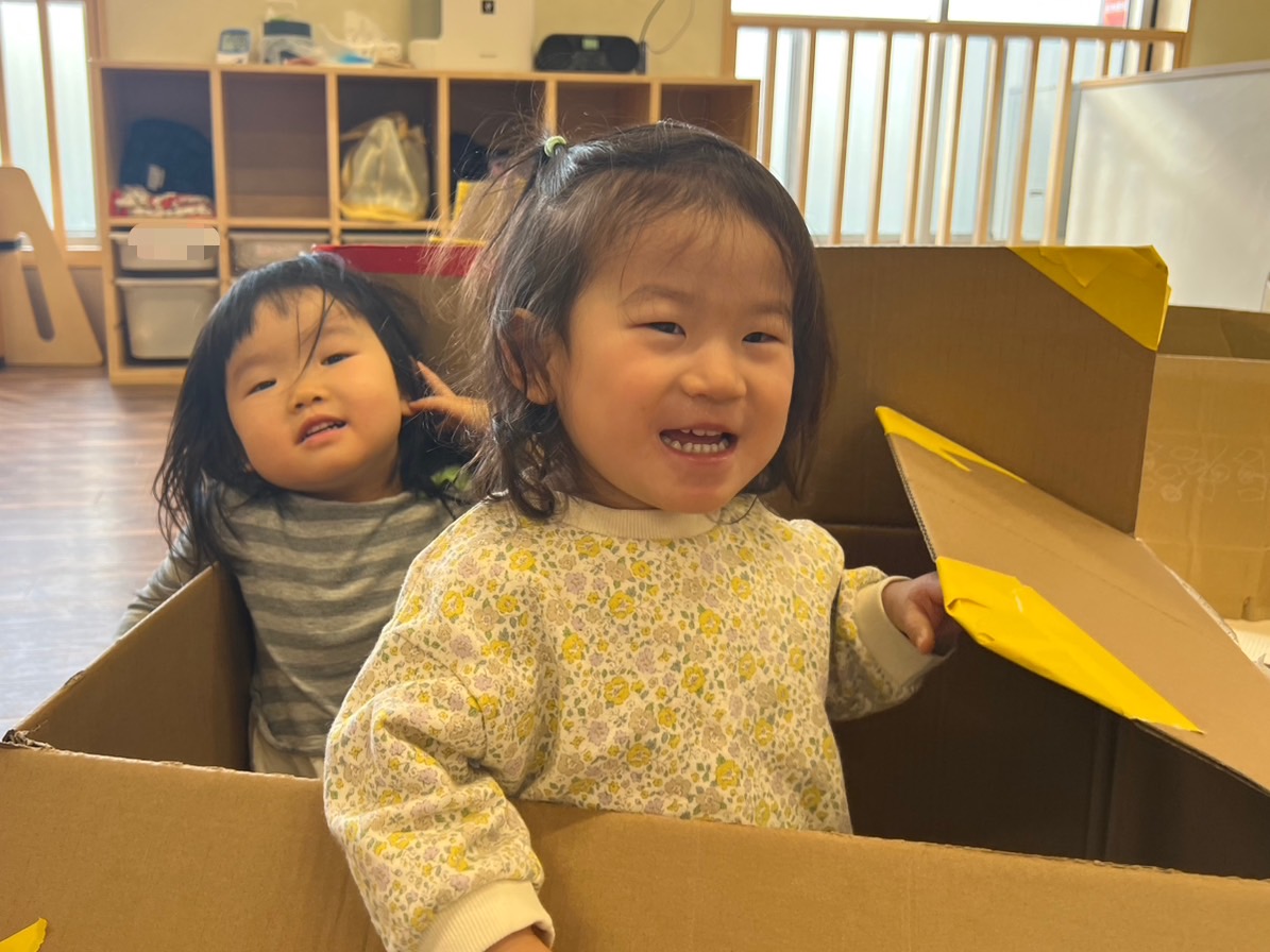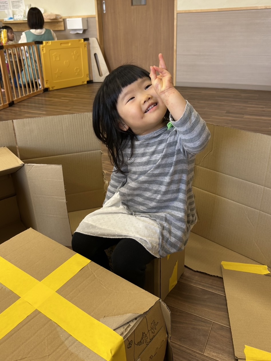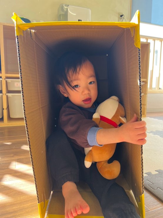 1・2歳児さんは室内でダンボール遊びをしました😊🎶