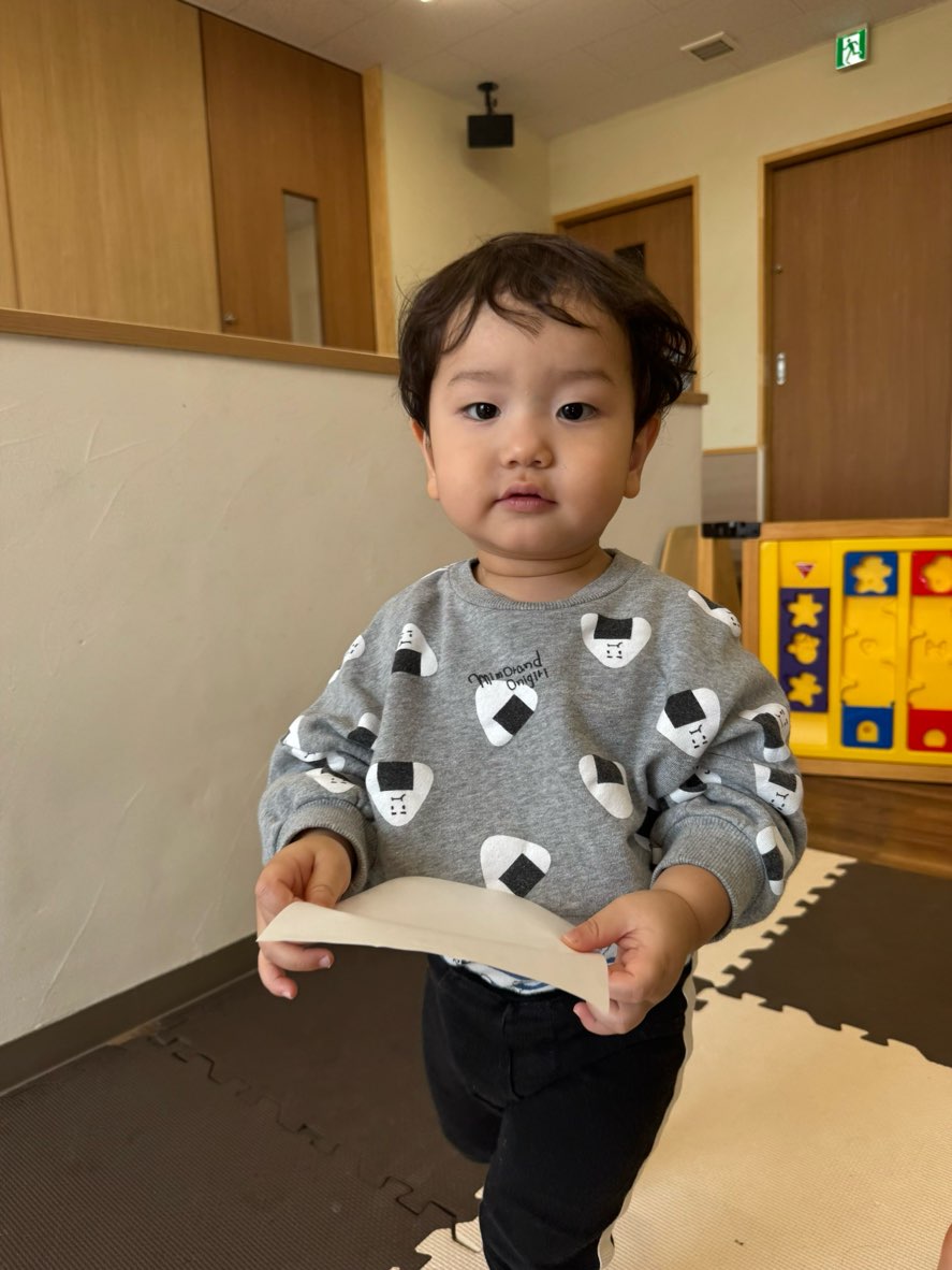 保育者とおりがみでおにぎりを作ってみるよ🍙