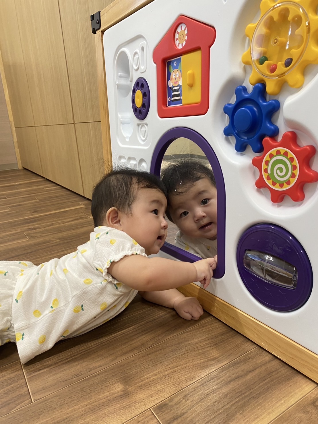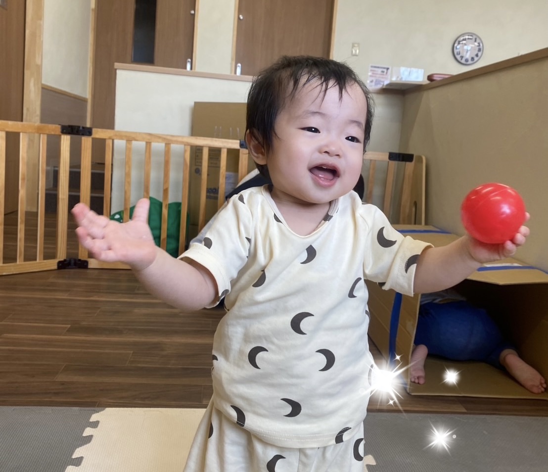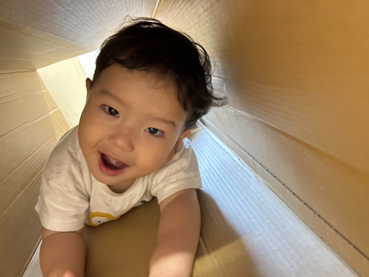 ダンボールのトンネルをハイハイで進んだよ🌟