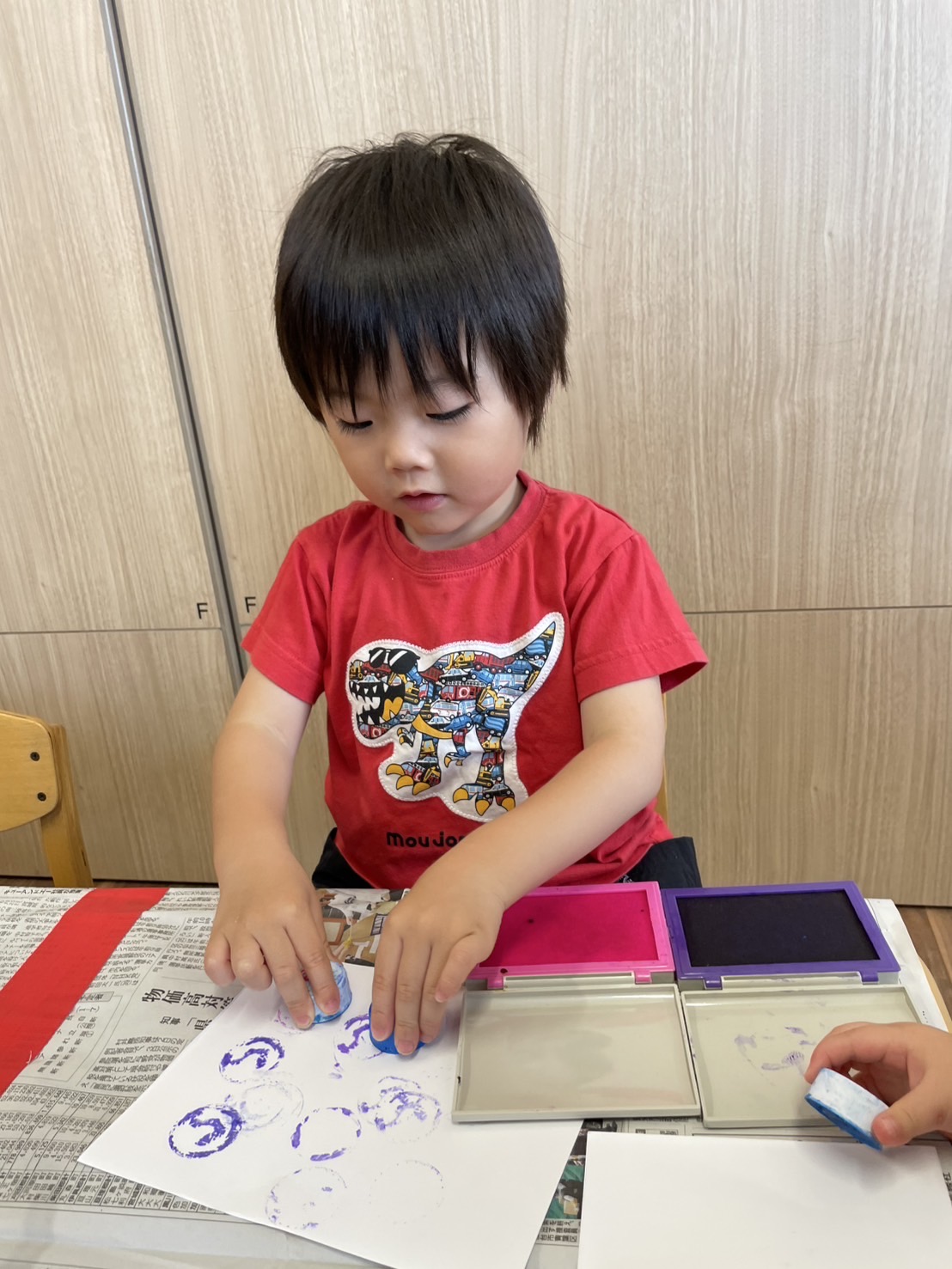 いっぱい丸作るの❗️とたくさんスタンプを押していました😆🌟