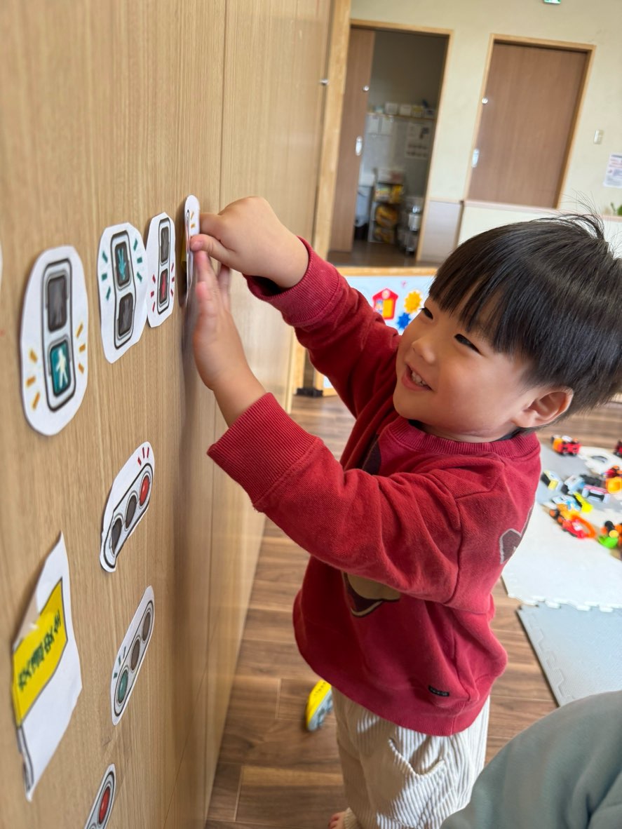 こちらでは信号の標識を張って遊びました✨