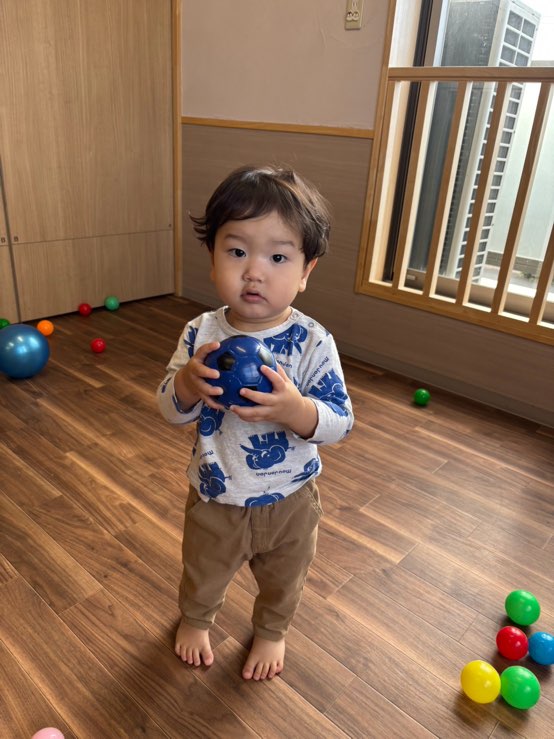私は大きな青いボールで遊んだよ💕