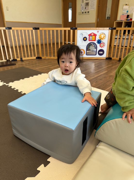 0歳児さんは室内でソフトブロック遊びをしました🌟