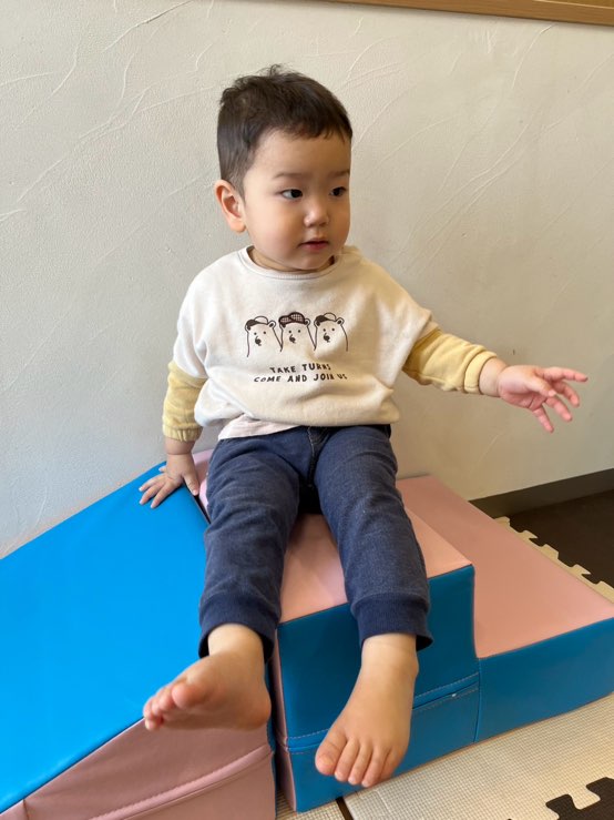ぼくは滑り台に座って滑る準備オッケー🛝✨
