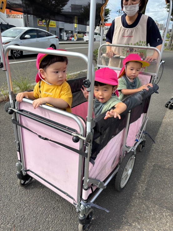 0歳児さんは散歩車に乗ってお散歩です🎶出発進行〜😆