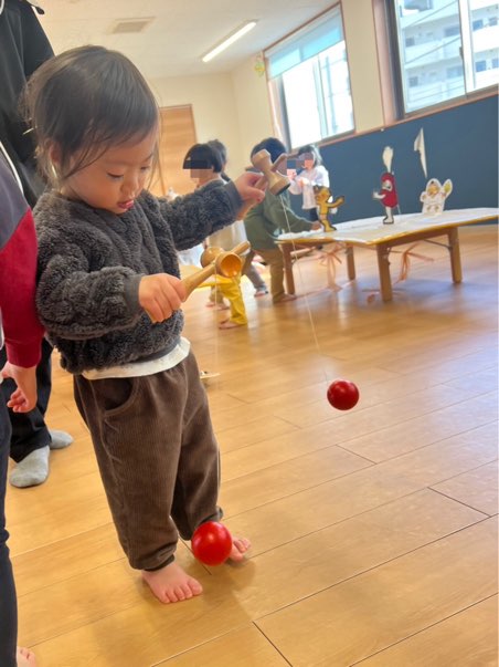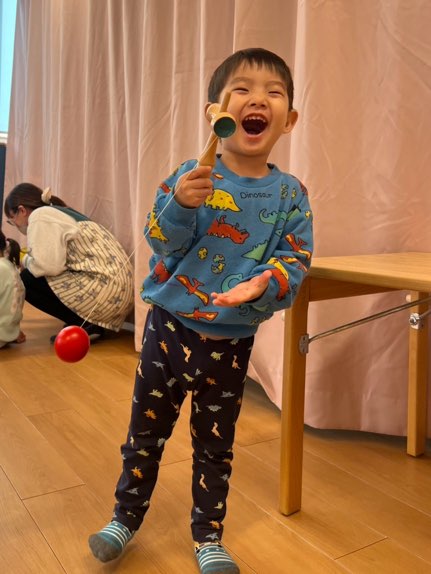 僕達は本物のけん玉に挑戦✨難しいね🥹
