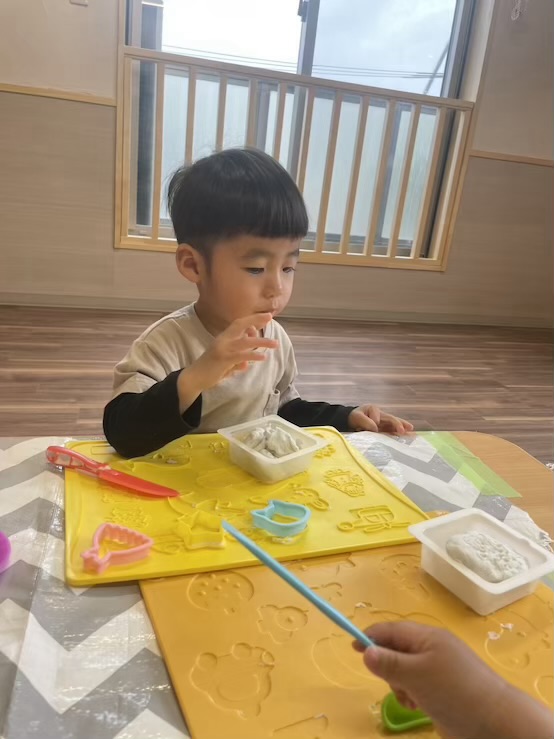 1歳児さんは粘土で遊んだよ✨