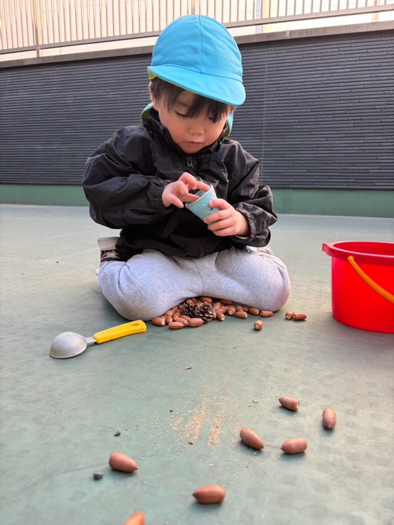 僕達はどんぐりやおもちゃで遊びました✨