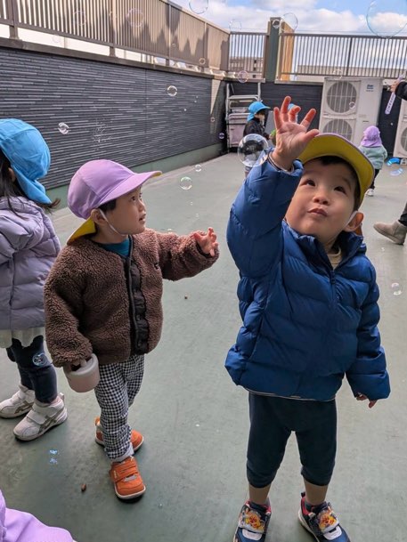 僕たちはしゃぼん玉をしたよ😊まてまて〜🩷