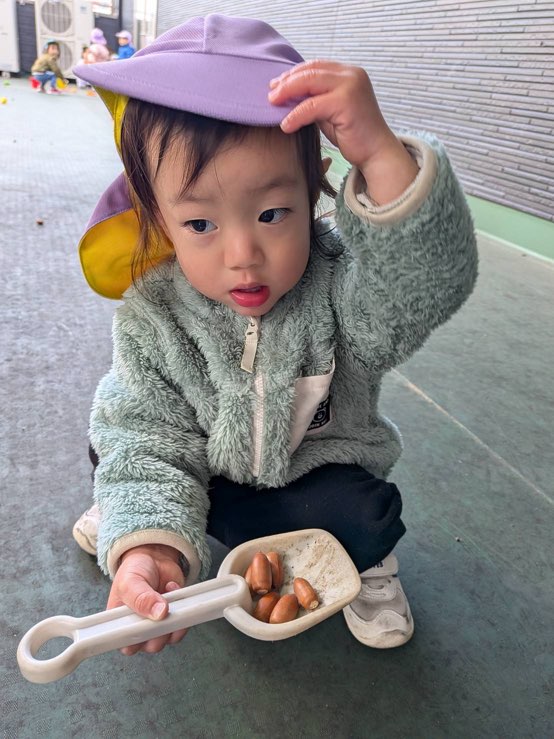 シャベルでどんぐりをすくったよ‼️