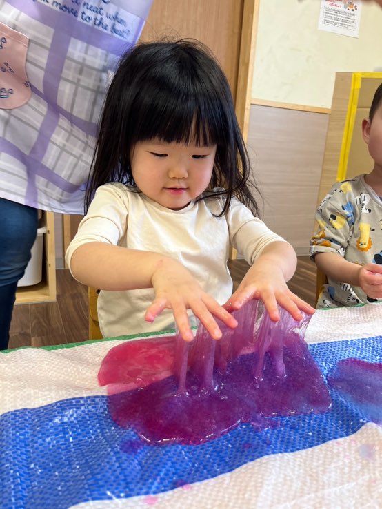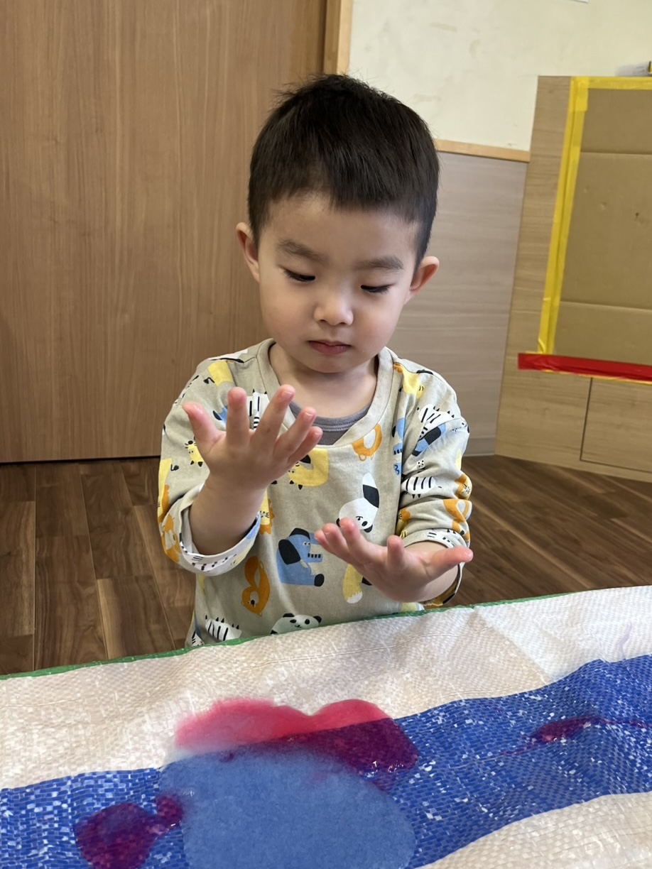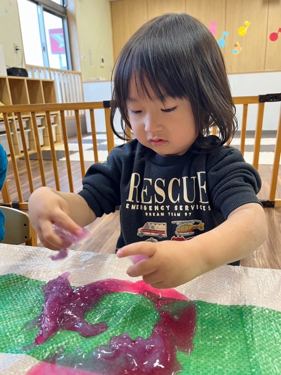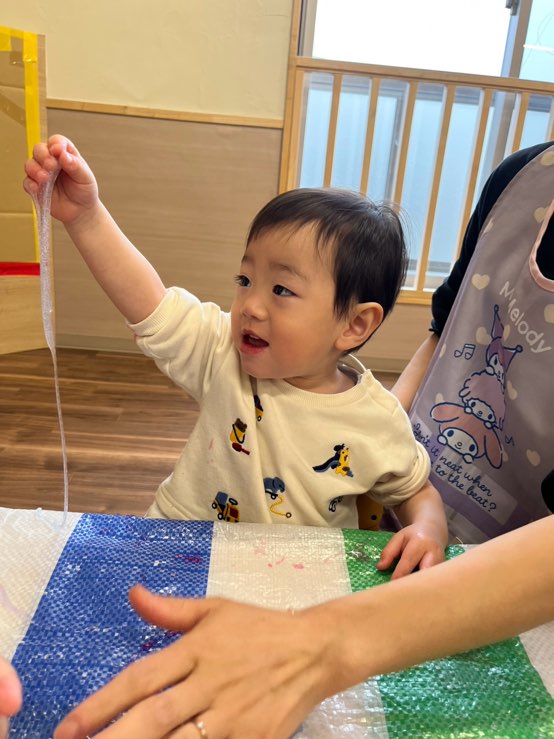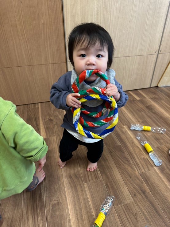 0歳児さんは輪投げやお手玉、滑り台をして遊びました‼️