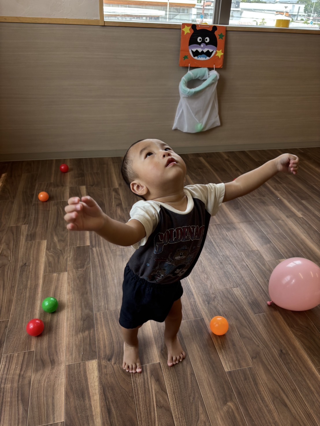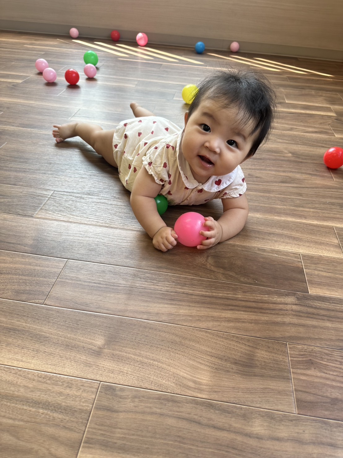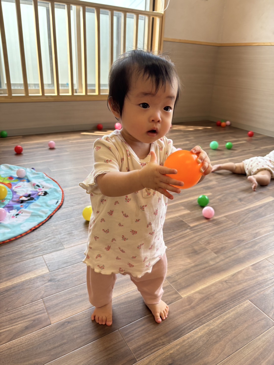 ボールを掴んで投げたり、転がしたりして楽しんでいました🩷