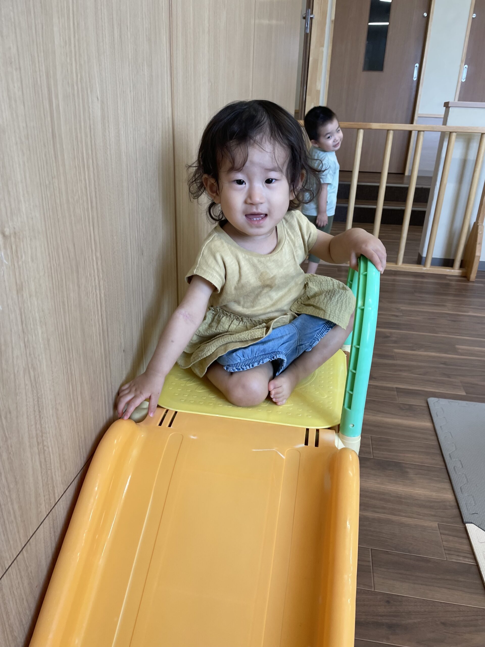 僕は1人で登って滑り台を滑ったよ🛝✨