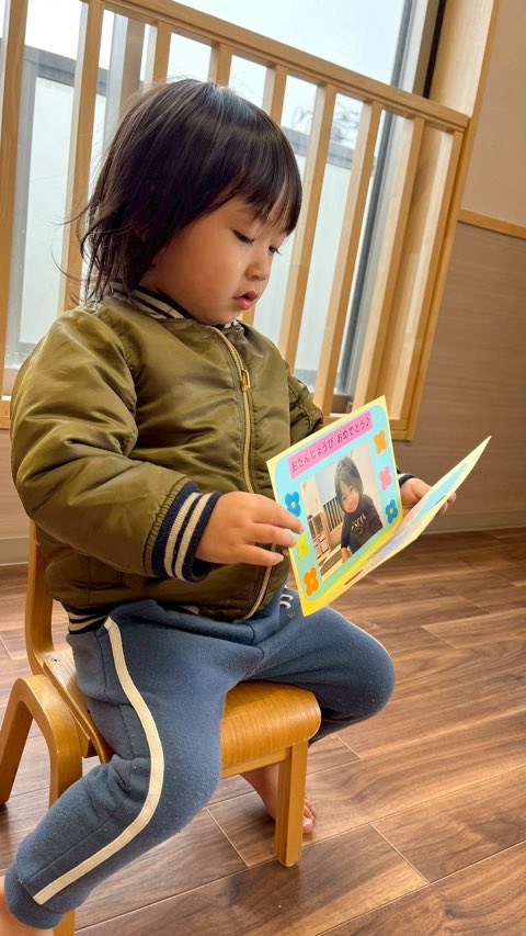 お誕生児の子にお歌のプレゼントと、保育者からは誕生日カードのプレゼントをしました🌟