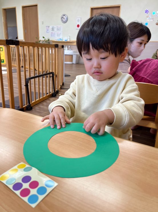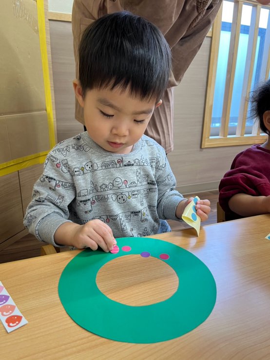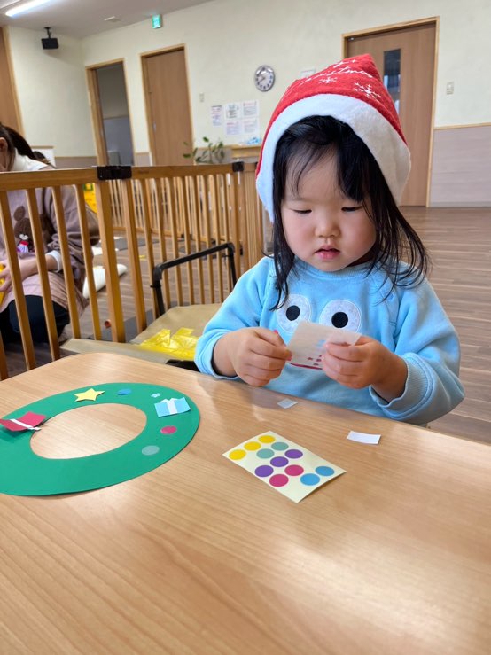 サンタさんとたくさん遊んでもらった後は、リースを作ったよ🎄