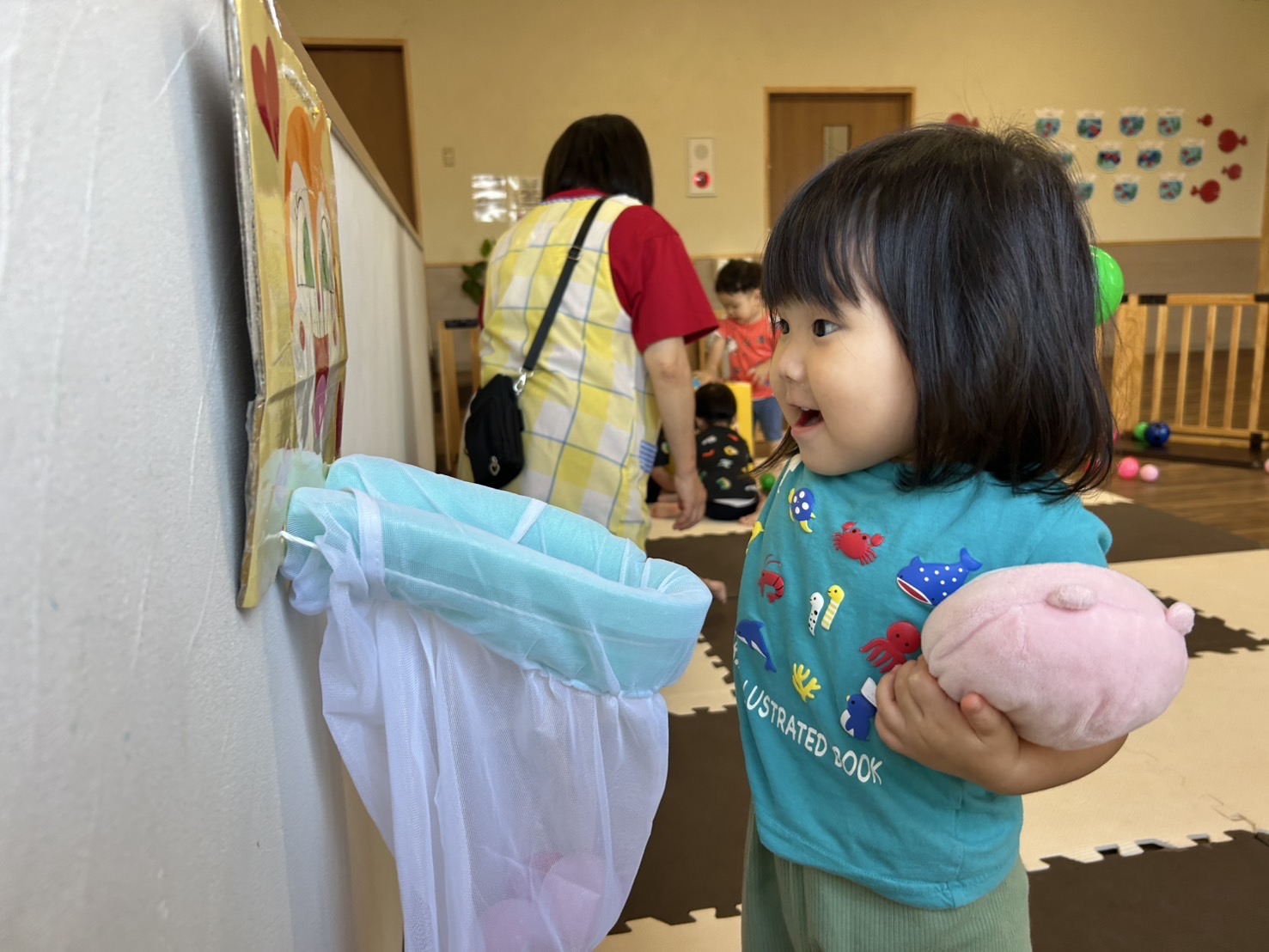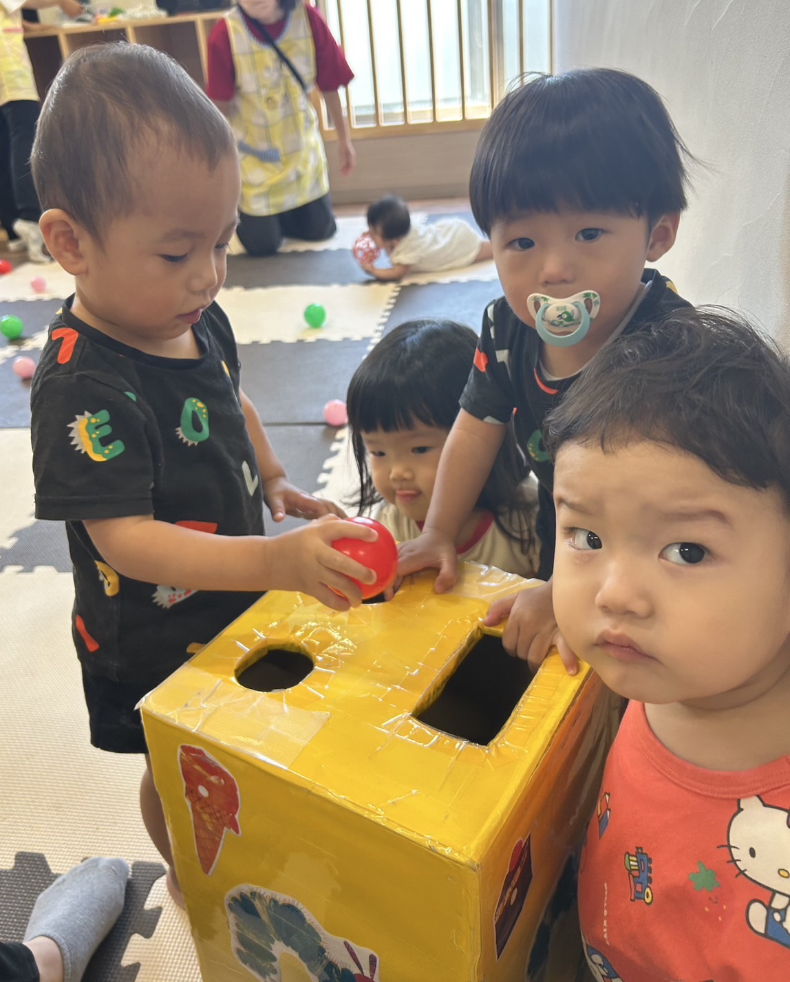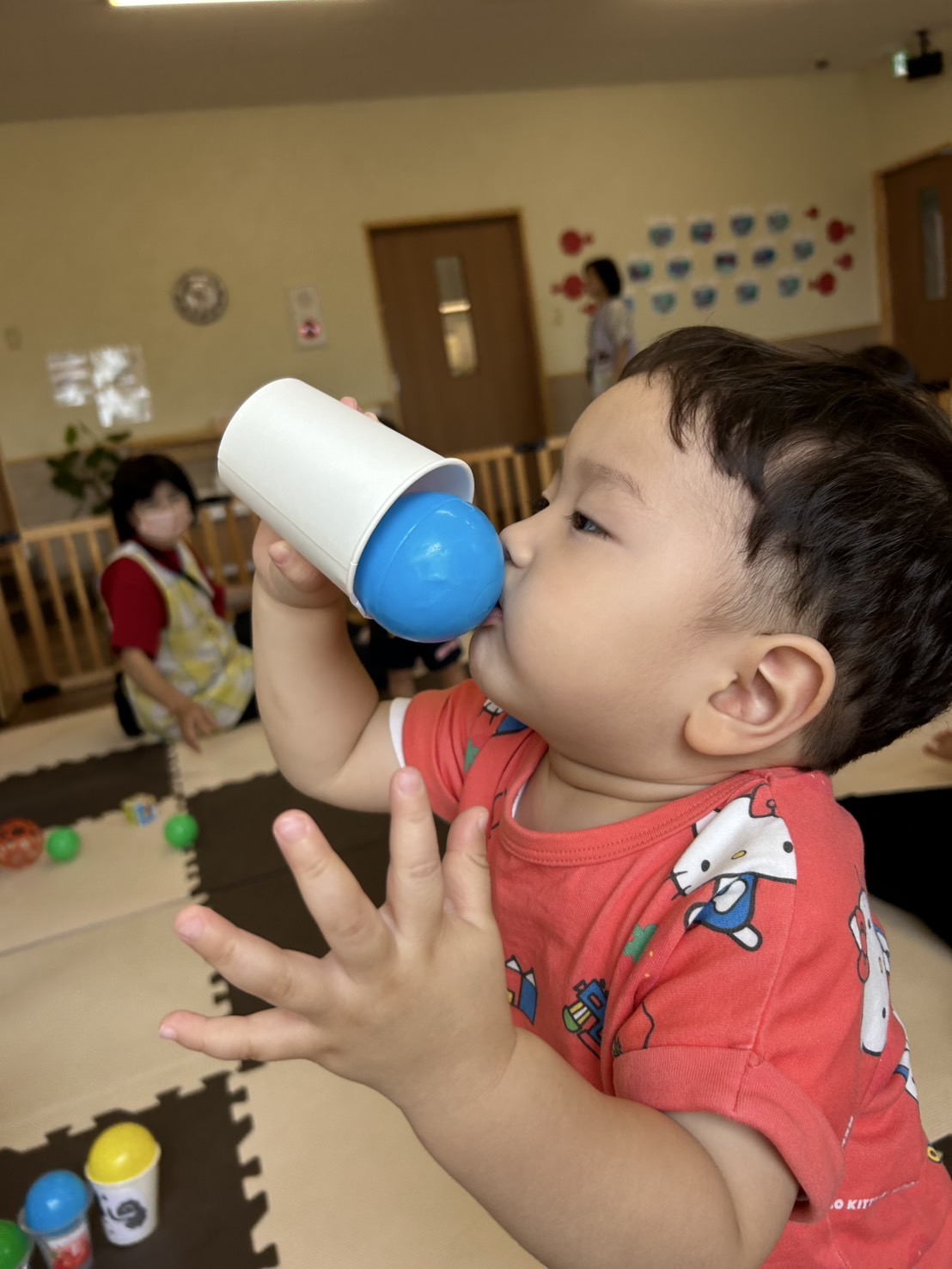 お顔の穴に赤色🔴ボール入るかなぁ🥰