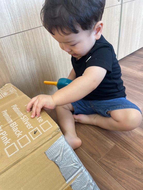 0歳児さんはダンボール遊びを楽しみました📦✨