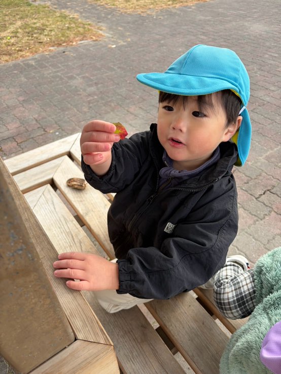 僕は綺麗な色の葉っぱを見つけたよ🍃