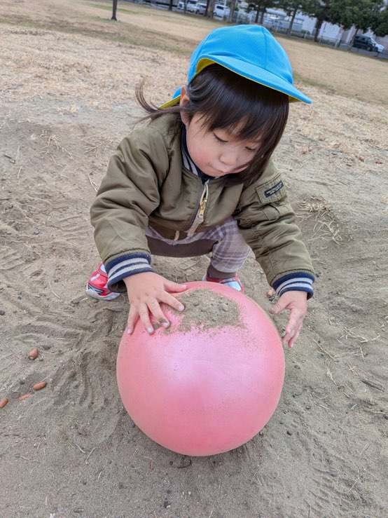 ボールに砂をのせてみたよ〜😊サラサラ落ちて楽しいね✨