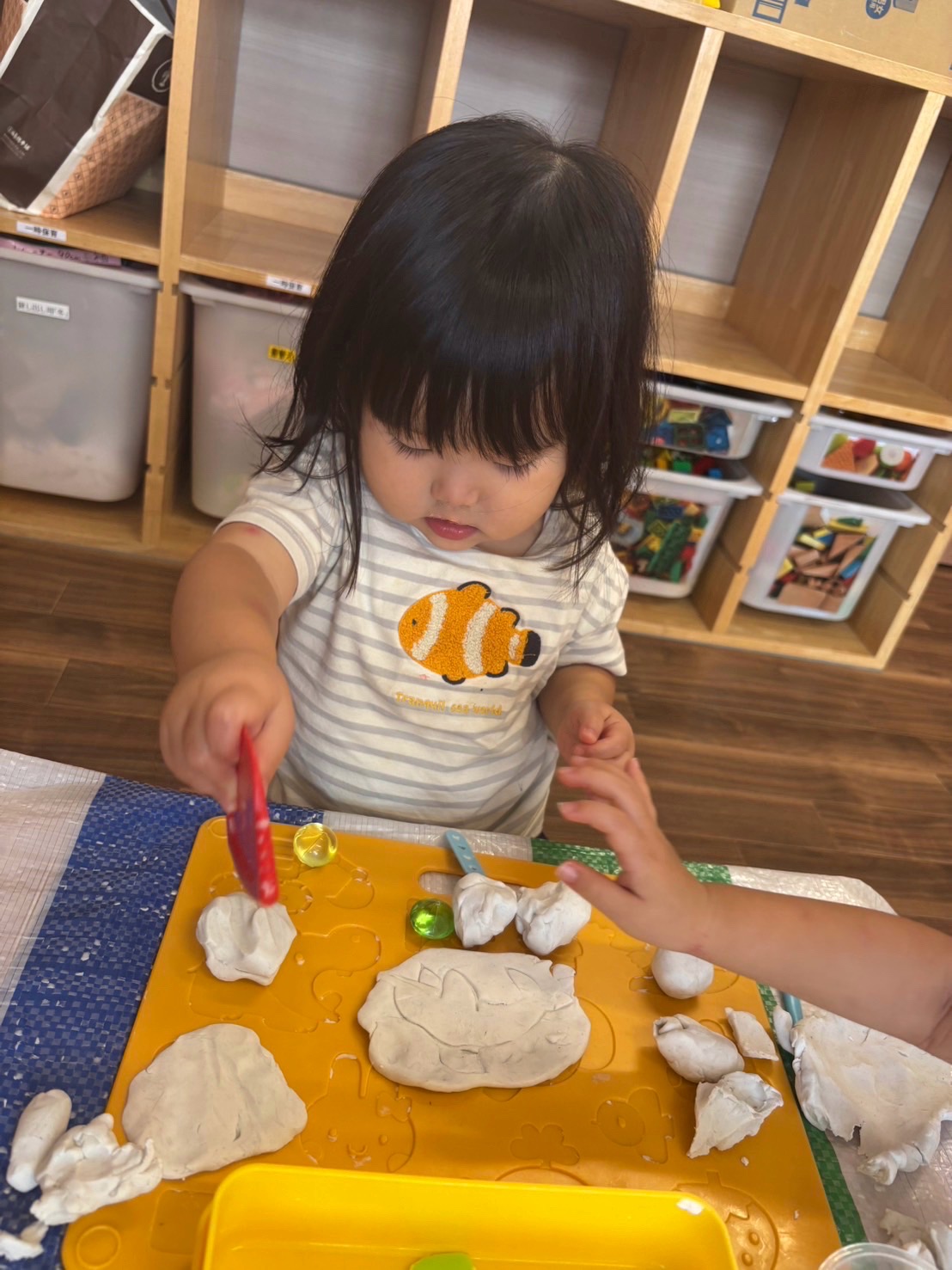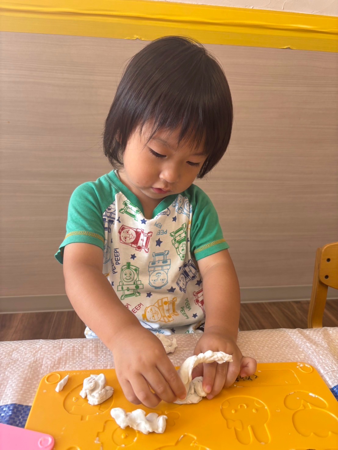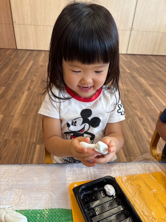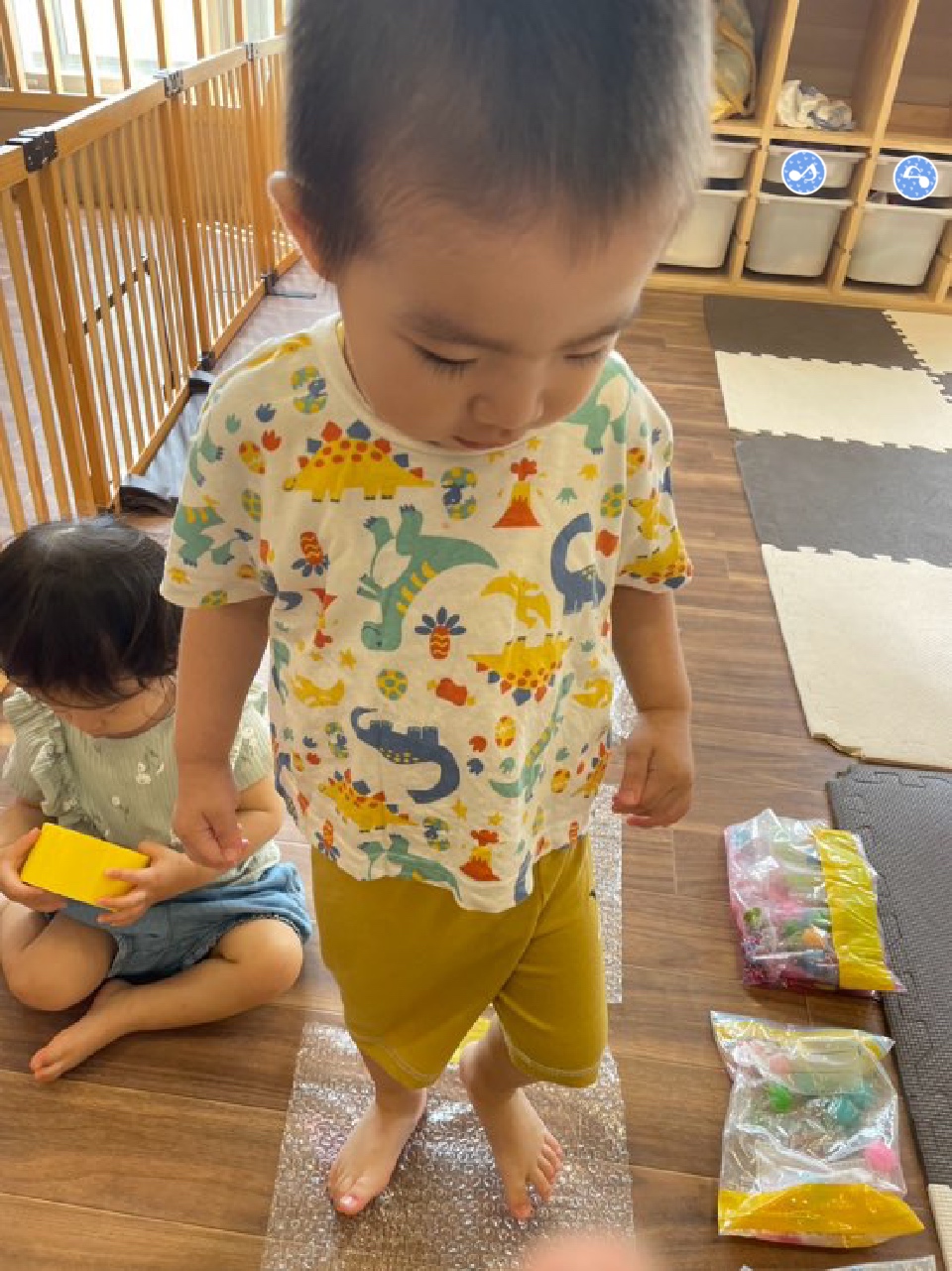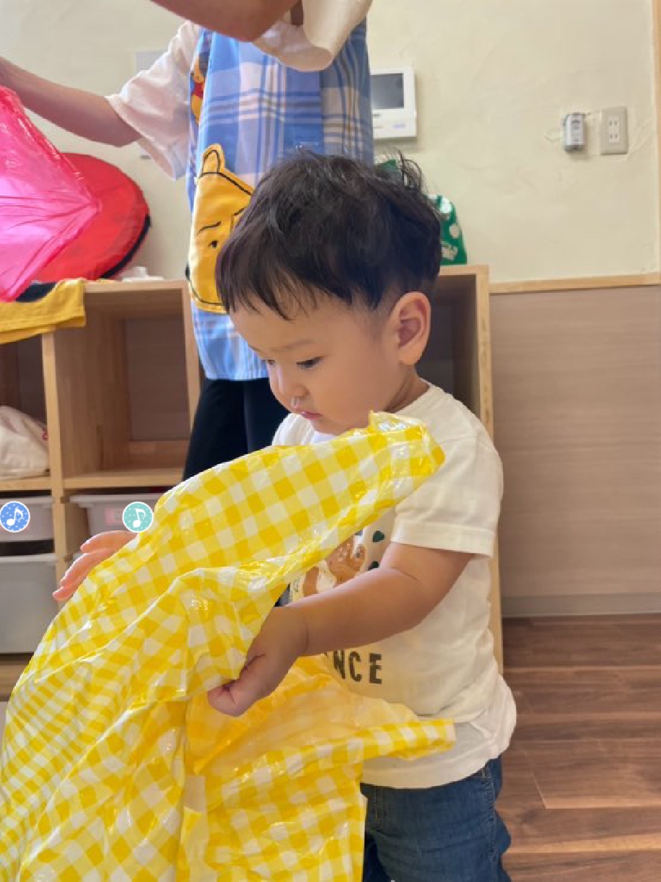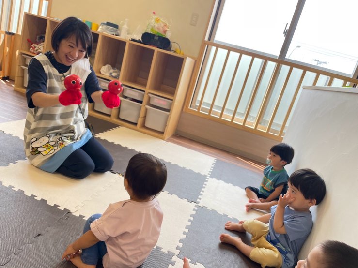 0、1歳児さんは、タコが出てくる手袋シアターを見てから遊びました😆