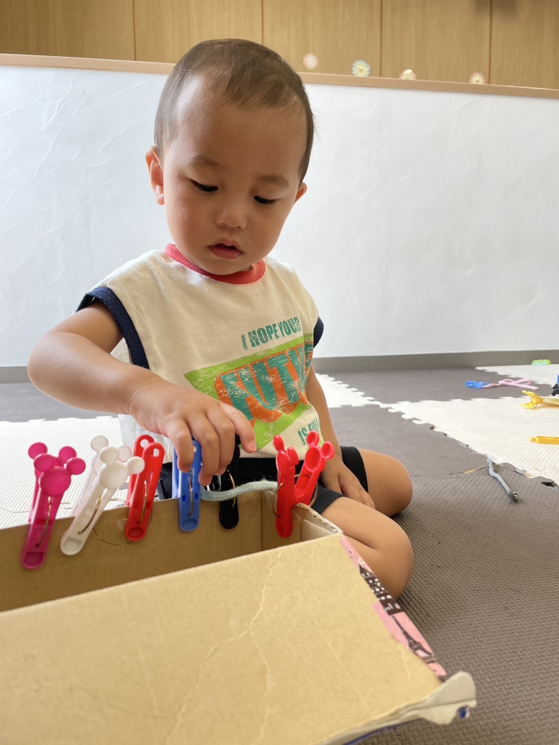 洗濯バサミをつまんで取ったりつけたり楽しいね😆✨