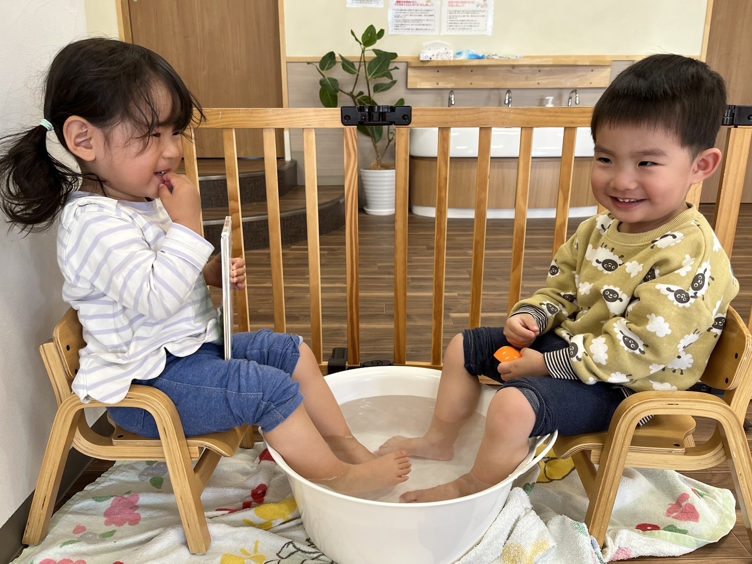 たくさん遊んだ後は,暖かい足湯にゆったり入りました😆♨️