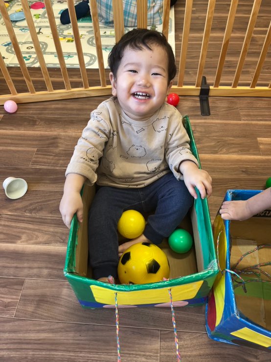 ダンボールバス楽しいね💕