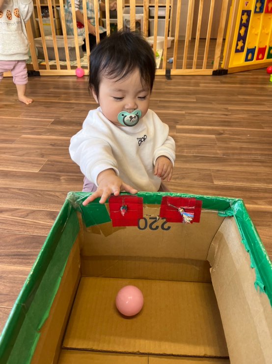 0歳児さんはダンボール遊びをしました☺️