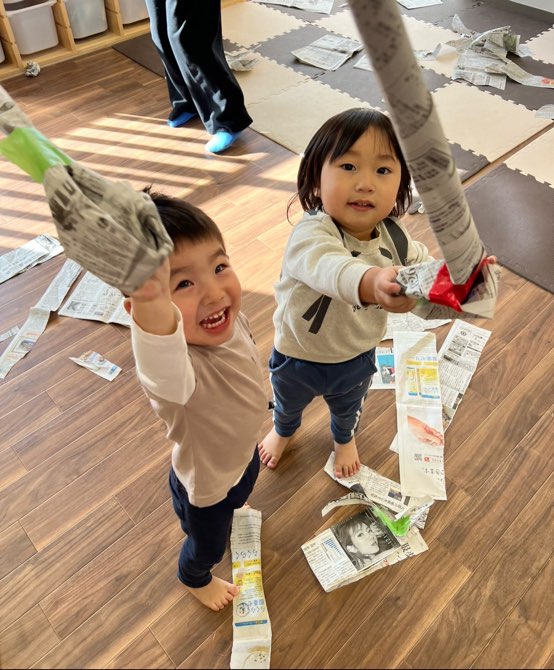 1,2歳児さんは新聞紙で遊びました📰