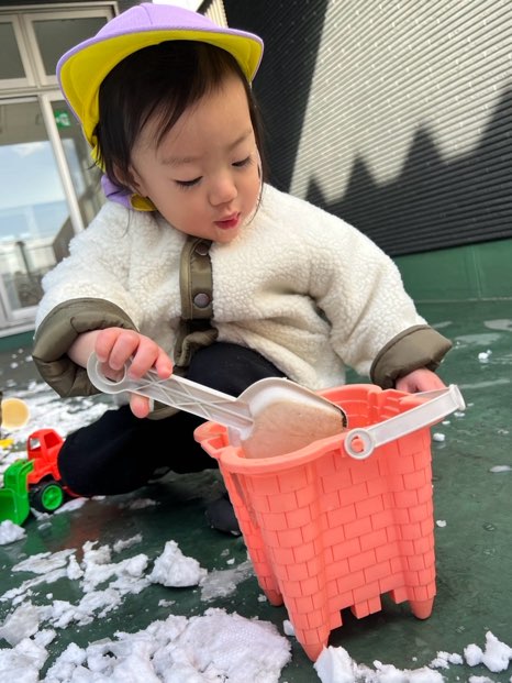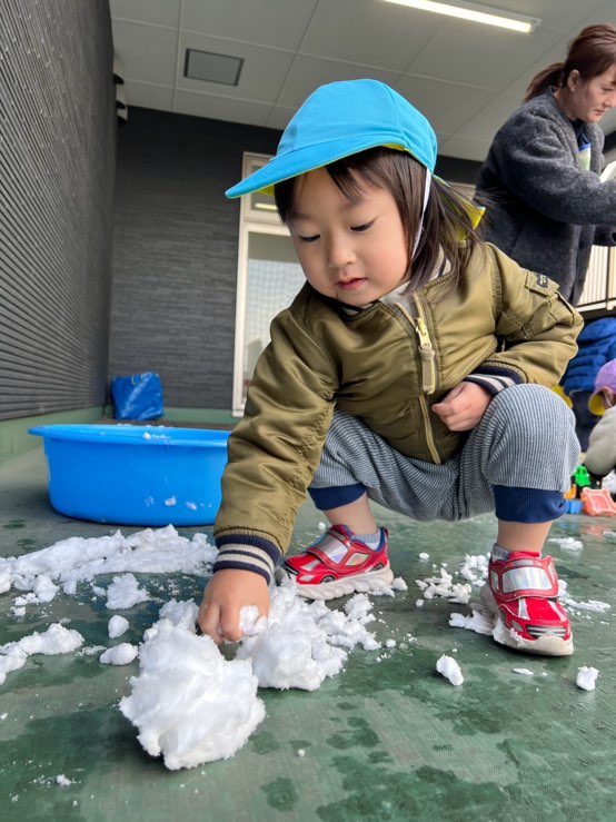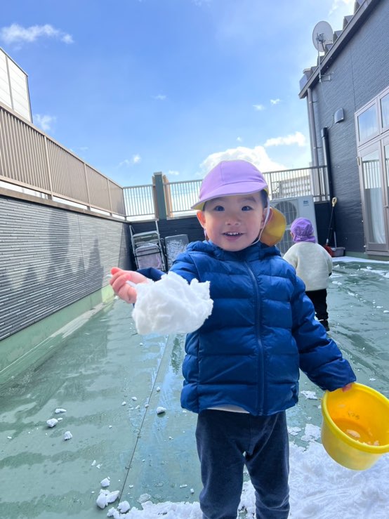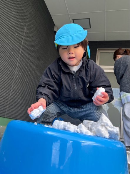 1・2歳児さんはテラスで雪遊びを楽しみました🎶